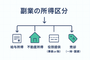 • 副業の報酬(配達・ライター・デザイン等)/アフィリエイト・広告収入/ネットオークションの反復転売。